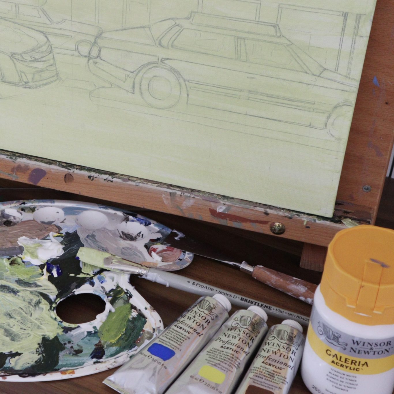 I am a realist painter working in both acrylic and digital media, inspired by American realism, Edward Hopper, and the Photorealism of the 1970s. My work balances precision with painterly qualities, allowing brushstrokes, texture, and atmosphere to shape my work. After becoming a mother in 2021, I took a break, and my studio became a nursery, so space and time became an issue. This led me to respond to my surroundings, and I also began to create digital realist paintings to continue exploring the subtle details of everyday life.